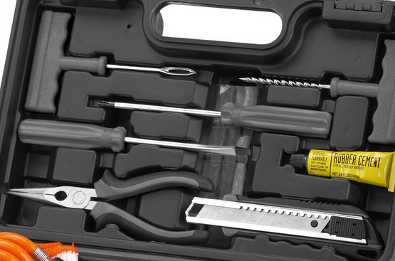 При помощи специального клея, резиновых жгутов и монтажных инструментов, входящих в комплект поставки, вы сможете самостоятельно произвести ремонт прокола в полевых условиях.